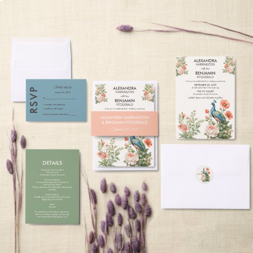 Convite Wedding Peacock Botanical | Vintage Floral Art