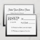 A simple, fun, modern RSVP card in black and white. On the front your guests can write the number of the guests and on the back they can pick their entrees.