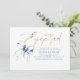 A beautiful and elegant engagement party invitation "We're Engaged" with navy blue bow and flowing handwritten gold script. The clean white background keeps the design light and refined, while the delicate details add a romantic touch. Perfect for couples who want a timeless, modern look to announce their engagement and invite loved ones to celebrate this special moment.