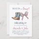 Elegante O que será o Baby Boots ou os Arcos Pensados Gênero Revelam Convite com arco de cor d'água rosa e botas de cowboy de denim azul. Produtos correspondentes que você pode encontrar na coleção.