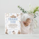 Send a big "Thank You" from the wild west! This matching thank you card features a rustic cowboy hat and desert elements in blue and tan. Perfect for thanking guests for attending your son's "How the West Was One" first birthday celebration. A sweet and stylish way to show your gratitude.