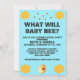 Beautifully designed 'What Will Baby Bee?' gender reveal party invitation. This invitation sets the tone for a memorable gender reveal where loved ones and friends gather to unveil the exciting news of your baby's gender. Feel free to customize/personalize this invitation to your liking. Enjoy your gender reveal!