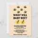 Beautifully designed 'What Will Baby Bee?' gender reveal party invitation. This invitation sets the tone for a memorable gender reveal where loved ones and friends gather to unveil the exciting news of your baby's gender. Feel free to personalize this invitation to your liking. Enjoy your gender reveal celebration!