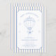Embark on a 'new adventure' with this charming baby shower invitation! Featuring a whimsical blue hot air balloon illustration against a backdrop of delicate stripes, this design captures the excitement and anticipation of a new arrival. The soft blue and cream color palette creates a serene and joyful atmosphere, perfect for celebrating your little one. It's an ideal way to invite loved ones to share in the joy of honoring the mom-to-be, Shannon Wilkinson, before her big day. Let this invitation set the tone for a memorable and heartwarming celebration.