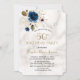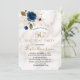Convite Whimsical Blue Dourado Floral 50º aniversário