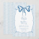 This whimsical invitation features a soft blue watercolor bow and a playful geometric frame against a classic blue and white striped background. Perfect for a wedding with a preppy or coastal aesthetic, this charming design provides a sweet, hand-painted look for your special celebration. Created by Simply Farmhouse Press.