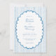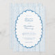This whimsical invitation features a soft blue, playful scalloped oval frame against a classic blue and white striped background. Perfect for a wedding with a preppy or coastal aesthetic, this charming design provides a sweet, hand-painted look for your special celebration. Created by Simply Farmhouse Press.