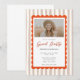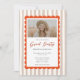 Brown stripes orange scallop grad party design with a modern script title and photo layout. Perfect for high school or college graduation celebrations. Stylish, fresh, and easy to personalize for a polished and memorable grad party event.