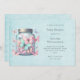 Baby shower invitation with a magical image featuring pastel colored butterflies in a jar.