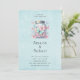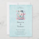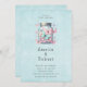 Wedding invitation with a magical image featuring pastel colored butterflies in a jar.