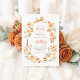 From the elegant watercolor bow at the top to the charming sketches of a champagne bottle, glowing candle, and a sweet slice of wedding cake at the bottom, every detail of this design suggests a day filled with joy, warmth, and refined celebration. The warm color palette of terracotta, apricot, and pale sage green makes it a perfect choice for fall garden weddings, desert nuptials, or an elegant brunch-style boho ceremony.