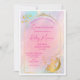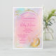 A Whimsical Gold Fairy Pixie on a Pink and Pastel Color background with Magical Butterfly accents Quinceanera Invitation