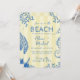 Seaside on the beach fun striped citrus yellow and blue playful unique wedding invitation featuring hand drawn starfish and ocean corals, and a chic whimsical handwritten calligraphy script. +++++++ All colors are editable; digital download available. +++++++++ Suitable for casual trendy beach coastal summer destination weddings.