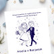 celebrate your love with this whimsical hand drawn wedding couple design, perfect for wedding invitations, party favors, or keepsakes. The charming, playful illustration captures the joy of your special day and adds a personalized, artistic touch to your wedding stationery.