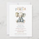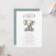 Sweet little peanut theme watercolor elephant enchanting illustration blue baby shower invitation in colored type with the phrase: our sweet little peanut is on the way. Gender neutral. Available in print, as a digital download, or both!