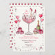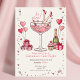 Celebrate in style with this playful Galentine's Day illustration featuring a whimsical oversized martini glass with glamorous legs in red heels, surrounded by pink gift boxes, champagne bottle, cupcakes, and heart balloons. This fun and creative design captures the joy and humor of friendship celebrations. Perfect for a memorable girls' party that promises laughter, treats, and bubbly fun.