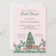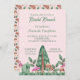 O convite Bridal Brunch apresenta a fronteira inferior com folhas de prado, árvores e cogumelos e texto personalizável sobre fundo rosa pálido. A parte de trás do convite tem cogumelo e padrão de folhas.