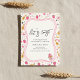 A charming whimsical engagement invitation design featuring soft pink watercolor elements, wine glasses, champagne bottles, strawberries, and sweet dessert accents. The playful hand-painted style paired with romantic blush and gold tones creates a warm, celebratory feel perfect for modern engagement parties. Ideal for couples seeking a fun yet elegant invitation aesthetic that feels joyful, intimate, and effortlessly stylish.