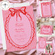 Convite Whimsical Red Pink Watercolor Bow Stripe Wedding