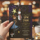 Convite Whimsical Snowman & Starry Night New Year's Eve