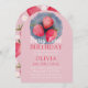 Convite Whimsical Strawberry Red & Pink 1st Birthday Invi