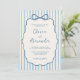 Convite Whimsical Stripe Bow Dusty Blue Ivory Wedding