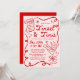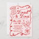 Celebrate the season with this whimsical Christmas party invitation featuring hand-drawn red illustrations and lettering on a light pink background. The design showcases Santa lounging in a martini glass alongside his list, stars, and a flowing ribbon frame surrounding your party details. “Tinsel & Tinis” appears in a fun handwritten script for a modern, trendy twist on a classic Christmas theme—perfect for holiday cocktail parties, Secret Santa gatherings, or festive soirées with friends.