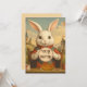 Fall in love with this charming and unique take on the White Rabbit from Alice in Wonderland! This delightful illustration portrays a cute, anthropomorphic white rabbit seated at a rustic table, holding a heart-adorned invitation or card. Dressed in a whimsical red and green outfit, he's ready for a tea party in an enchanting landscape dotted with fairytale castles, colorful banners, and blooming flowers. Teacups and a cake complete this sweet and imaginative scene, perfect for fans of Alice in Wonderland and anyone who adores whimsical, heart-filled art.