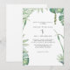 Segundo plano branco nenhum dos pais listou convite para casamento tropical. Folhagem tropical. Junto com nossas famílias... cantos.