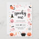 Convite White BG Pink and Orange Halloween 1st Birthday In