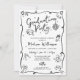 Be proud, rejoice and showcase this milestone of your favorite grad! Send out this quirky, whimsical, simple, modern, personalized invitation for an event to remember. Fun, black handwritten script typography and hand drawn graduation icon sketch doodles overlay a white background. On the back, their name and a hand drawn cap and diploma in white overlay black. Personalize the custom text with your grad’s name, school, class year and party info on the front. Matching save the dates, thank you cards, banners, welcome signs, posters and other graduation goodies are also available in this trendy and whimsical collection. Guaranteed to add stylish fun to their special occasion!