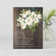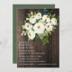 Nossos belos convites florais de Bridal Brunch estão enterrando com elegantes flores brancas de cor d'água buquês tons de branco e verde em um fundo de madeira rústica escura impresso. Design apresenta um Buquê de Bide de flores florescentes no canto superior direito. Adicione seus detalhes em letras modernas de cinza e verde-escuro. O reverso da carta está em um tom elegante, escovado de verde-escuro. Para obter suporte ou solicitação personalizada, entre em contato conosco através da loja ou escreva em citronelladesign@gmail.com Este item faz parte da coleção White Bloom /rustic version