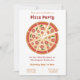 Um Convite de Aniversário para a Festa Branca com uma ilustração de pizza Margherita cheio. Perfeito para um aniversário, aposentadoria, quintal, festa de vizinhos, aquecimento de casa, chá de fraldas ou qualquer recepção de pizzarias que você organiza com amigos ou familiares!