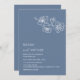 This elegant contemporary wedding invitation features white line art flowers and white script on a dusty blue background.