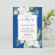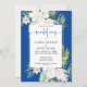 Convite White Flowers on Blue Background Wedding