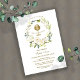 Elegant card design featuring watercolour delicate white flowers and green leaves wreath, a faux gold chalice and wafer (holy communion), white cross, on a white background. On the back white flowers bouquet. Use Personalise tool to add your info, change fonts, font's colours. For matching items, please, visit my Holy Communion Collection.