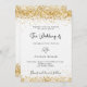 A stylish white background.  Decorated with faux gold glitter dust. Personalize and add your names and the details.