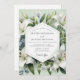 Delicate white lilies and soft greenery create a serene and elegant atmosphere. This design evokes a sense of timeless romance with its classic floral arrangement and subtle color palette. Perfect for an elegant affair.