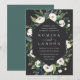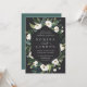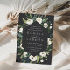 Nosso convite para o casamento de White Peony rodeia seus detalhes do dia do casamento com uma estrutura geométrica moderna de verde-coloração d'água pintada, folhagem botânica, rosa branca e flores de peônia.