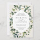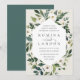 Nosso convite para o casamento de White Peony rodeia seus detalhes do dia do casamento com uma estrutura geométrica moderna de verde-coloração d'água pintada, folhagem botânica, rosa branca e flores de peônia.