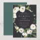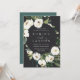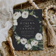 Nosso convite para o casamento de White Peony rodeia seus detalhes do dia do casamento com um quadro redondo de cor d'água verde pintada, folhagem botânica, rosa branca e flores de peônia, colocados no centro superior esquerdo para uma nova aparência moderna.