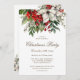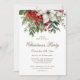 Convite de festas de Natal botânico elegante, com poinsettia branca, sagrada com bagas vermelhas e outros verdes.