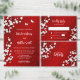 White cherry blossom branches and two butterflies with a red shimmering background. Japanese style wedding invitation.