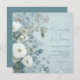 White Roses Hellebores Silver Eucalyptus floral wedding invitation featuring elegant calligraphy script modern watercolor flowers frosty pale blue background and snowflake details