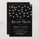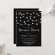Este elegante e caprichoso convite de brunch de ensaio apresenta luzes de fada brancas suspensas sobre um fundo preto. Personalize adicionando seus detalhes. Este convite de perfuração de ensaio preto-e-branco é perfeito para o exterior e casamentos outono.
