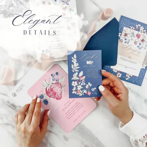 Adicione um pouco de doçura e elegância ao seu dia especial com nosso convite para chá de fraldas doce de morango. A design apresenta as nossas amoras doces e pintadas manualmente, morango, morango azul, amora e uma variedade de flores em um buquê com um arco cor-de-rosa para curar cuidadosamente todos os detalhes. Nossa elegante design de aquarela está florescendo com amoras e flores selvagens adoráveis. Prepare-se para um chá de fraldas doce e encantador que deixará todos desejando mais! Nossas lindas ilustrações florais e de morango são pintadas por nós em aquarela e digitalizadas e organizadas para produzir esse belo design de buquê de morango floral. Design e trabalho de arte por Moodthology Papery