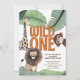 Wild One Cute Safari Animals 1st Birthday Party. Available digitally and printed. Sweet safari animals and forest greenery for your little one's first birthday celebration! Easily personalise text to your own details.