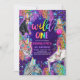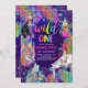 Convite Wild One Safari Neon Rainbow Cheetah Birthday