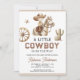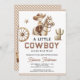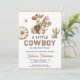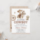 Saddle up for a celebration with this cute cowboy theme Baby Shower invite with QR code for gift registry at the back of the card. Featuring playful western details and an adorable little cowboy, this invitation sets the perfect tone for a western, rodeo, or country-style baby shower.