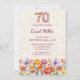 Celebrate her 70th in style with this wildflower invitation featuring a large floral-filled “70”, a soft linen-look background and watercolor garden flowers along the bottom. Personalize the name, party details and RSVP to create a beautiful keepsake for an elegant milestone birthday celebration. Enjoy!